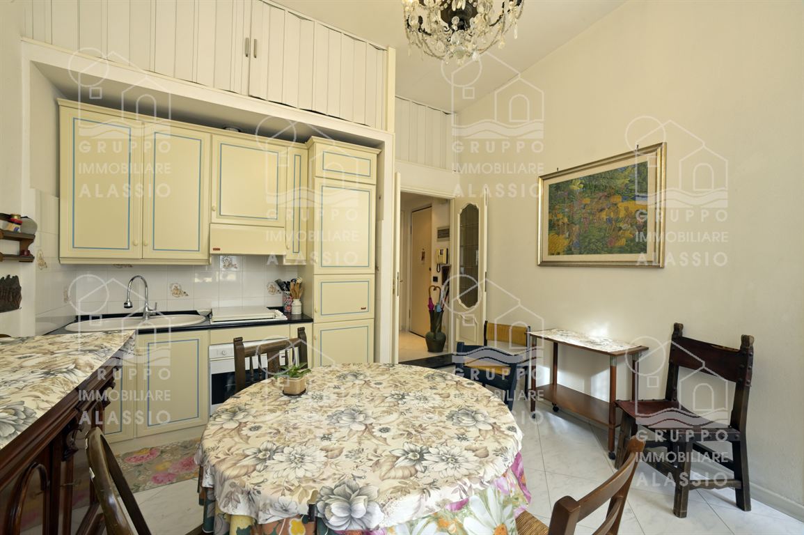 Proponiamo in esclusiva nel cuore del Budello di Alassio, nei pressi di via Torino, questo appartamento al secondo piano senza ascensore composto da ingresso disimpegno, zona tinello con cucina, tre vani utili, doppio servizio, balcone con affaccio grazioso verso il retro del centro storico e verso la collina. Posizione centralissima e comodissima, distante soli 50 metri dal mare e strategicamente comoda a tutti i servizi centrali di Alassio, quali bar, ristoranti, farmacie, negozi, supermercati, banche, poste etc. Nel caso si desiderasse avere un box auto pere parcheggiare la macchina, sarebbe disponibile, con prezzo a parte, anche un comodissimo e preziosissimo garage posizionato in fondo alla via Torino distante soli 180 metri. Termo autonomo con caldaia alimentata a gas metano. L’immobile non rientra in condominio, quindi non vi sono particolari spese di gestione. Ottima soluzione per chi desidera avere un alloggio nel pieno fulcro della cittadina per muoversi liberamente a piedi.