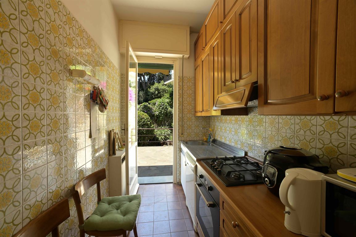 La proprietà è composta da ingresso, disimpegno, soggiorno ampio dal quale si gode di una poetica vista panoramica sulla collina e su tutto il golfo, cucina, due camere da letto entrambe vista mare, due bagni, i sopracitati, terrazzo e giardino prospicienti al lato mare e posto auto privato. Proprietà incantevole e di grande prestigio, la spiaggia è facilmente raggiungibile a piedi, percorrendo la suggestiva antica Strada Romana, per il ritorno ci si può munire di bici elettrica o usufruire del bus cittadino. Aria condizionate e riscaldamento autonomo.