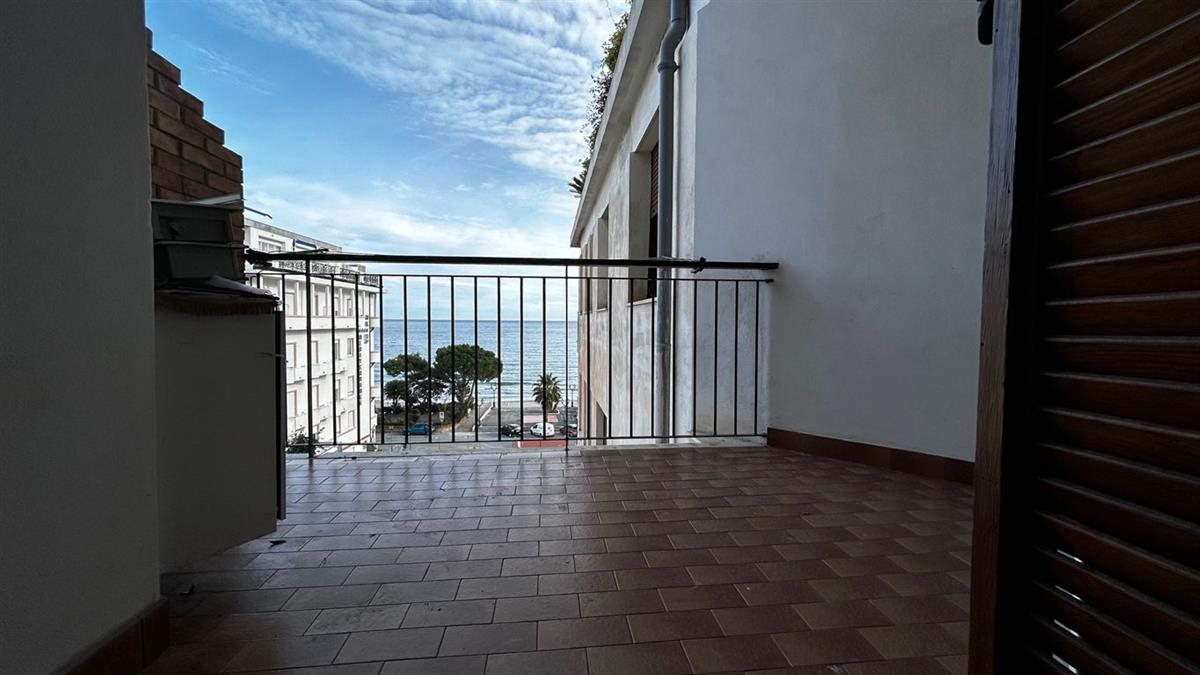 Siamo lieti di propone in vendita nella zona di ponente, e più precisamente in Corso Europa, appartamento al piano quarto con vista mare dal terrazzino vivibile. La spiaggia dista meno di 50 metri; il budello ed i negozi sono raggiungibili a piedi in soli 10 minuti. L’unità abitativa ha una superficie di circa 100 mq distribuita in ingresso disimpegno, soggiorno con angolo cottura e terrazzino vivibile vista mare, due camere matrimoniali, una camera da letto con bagno privato e balcone, secondo bagno. L’alloggio possiede due aree di esposizione. E’ un immobile ben esposto al sole e molto illuminato. Dispone di termo autonomo, aria condizionata e ascensore. Completamente ristrutturato con ottime finiture. Posizione molto comoda e molto tranquilla.