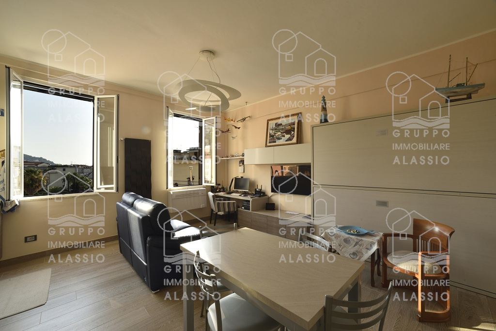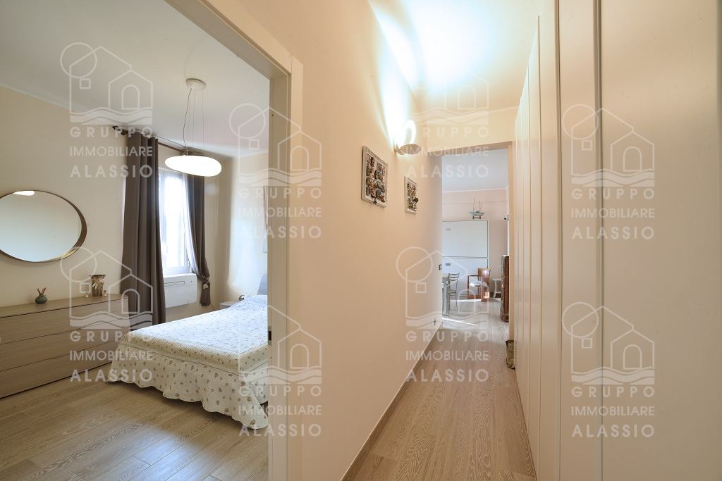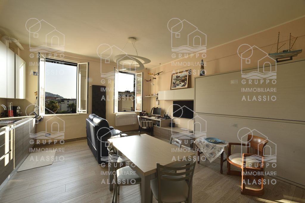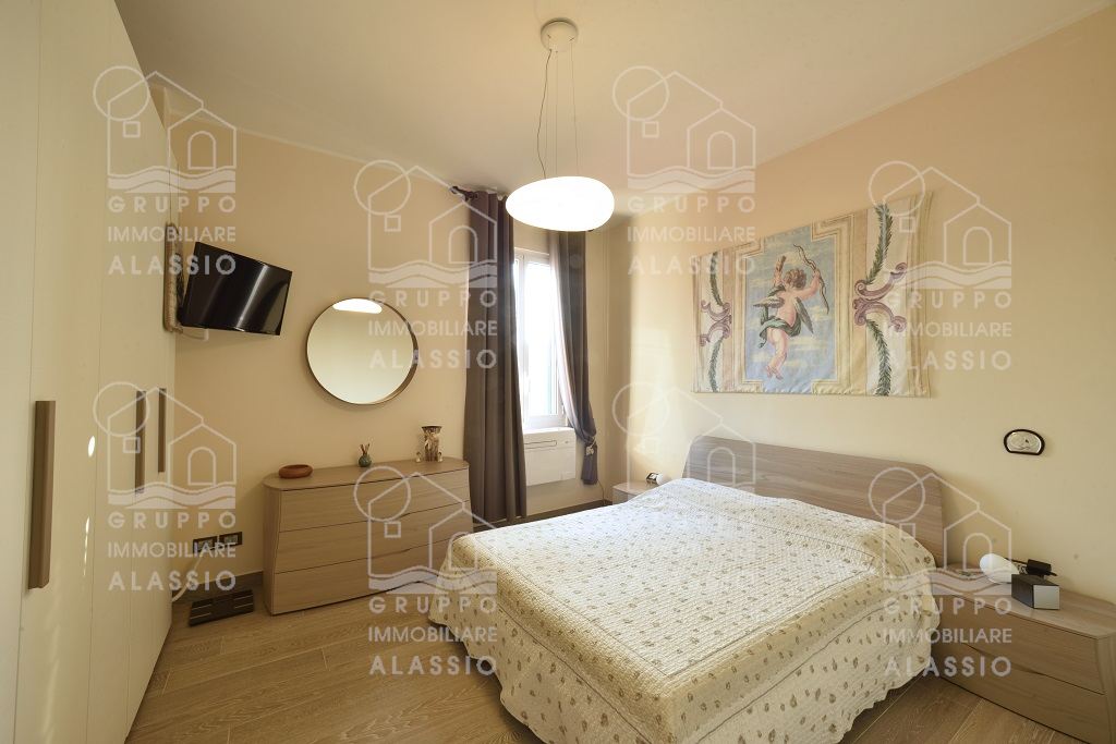 Proponiamo in esclusiva questo graziosissimo ed ampio appartamento bilocale, decisamente luminoso, ubicato al quarto ed ultimo piano, servito da ascensore. Internamente l’alloggio dispone di ingresso corridoio ( in grado di ospitare anche un ampio armadio ) , soggiorno spazioso ed arioso con angolo cottura e ripostiglio, grande camera matrimoniale e bagno finestrato. Molto piacevole la vista con affaccio verso la collina alassina e verso la chiesa di San Giovanni Bosco. Posizione centralissima – vico della Chiusetta – a pochissimi passi da qualsiasi esercizio commerciale e dalle spiagge. Riscaldamento autonomo con caldaia alimentata da gas metano ed aria condizionata con modello “Unico” in ambo i vani. Appartamento in perfette condizioni, dotato di una superficie di 66 mq. Unica pecca, all’interno di questo contesto carinissimo, è l’assenza di un balcone.
