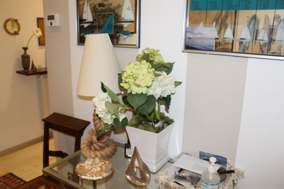 a due passi dalle spiagge di Borgo Coscia, vendiamo appartamento al secondo piano con ascensore, di mq. 80 completamente ristrutturato, Aria condizionata, riscaldamento autonomo infissi e serramenti nuovi, dotato di cancelletti e zanzariere. Ottime Rifiniture, composto da soggiorno con balcone vista mare, cucina, due camere da letto e due bagni con doccia, dalla cucina si esce su un magnifico giardino di mq. 100 con grande gazebo con tavolo e sedie in teac e più avanti una gradevole vista mare con due sdraio e tavolino, il giardino e' fornito di piccola fontanella in pietra e più avanti da doccia da giardino dove e' attaccata l'irrigazione temporizzata, sotto casa si ha la possibilità di posteggio libero.
