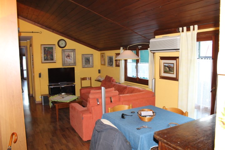 Alassio, zona comoda al mare, attico mansardato, quarto e ultimo piano con ascensore con garage, cantina e terrazzo, mq. 100 circa composto da 3 camere da letto, soggiorno, cucina e bagno terrazzo mq. 30 circa e 1 balcone, garage e cantina.