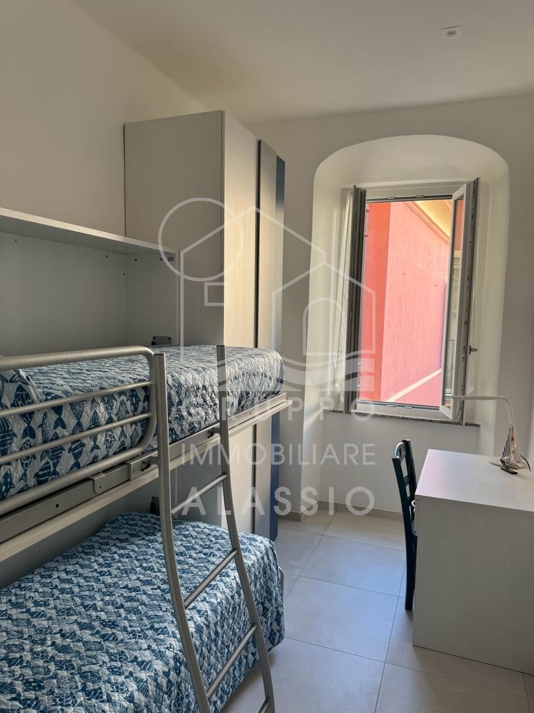 A pochi passi dal mare,in una delle zone più richieste, servita di tutti i servizi proponiamo in casa tipica ligure, con doppio ingresso di cui uno direttamente dalla passeggiata mare, alloggio ristrutturato di mq. 70 circa, composto da ingresso, cucina, doppi servizi, soggiorno, camera matrimoniale e camera con letto a castello .