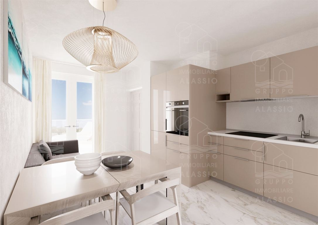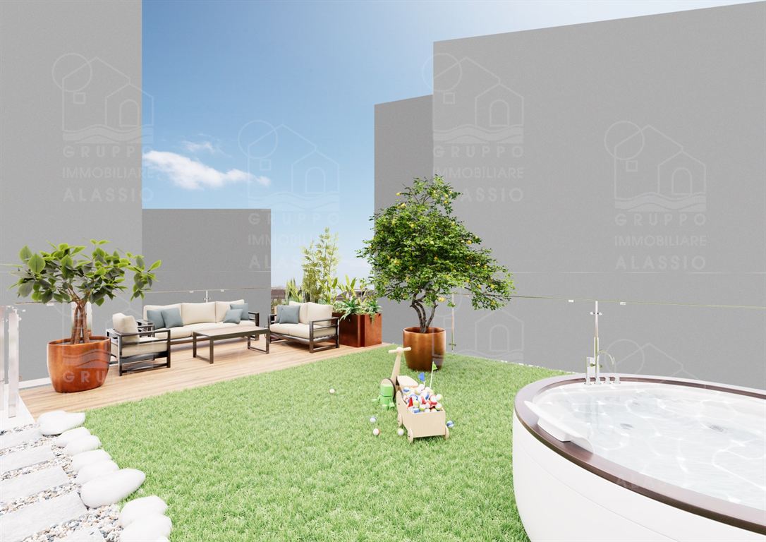 Prenotiamo appartamenti di imminente realizzazione nel centro di Alassio a meno di 150 metri dalla spiaggia.In una elegante e piccola palazzina vengono realizzati 7 appartamenti di varie metrature con terrazzo e posto auto di proprietà.L'attuale edificio verrà totalmente sventrato e ristrutturato con interventi di edilizia antisismica che ne miglioreranno la sicurezza strutturale.Verranno inoltre adottate varie soluzioni per l'efficienza energetica che porteranno l’intero stabile in Classe energetica A.Gli appartamenti sono tutti trilocali, di varie metrature, con uno o due bagni.Al piano terra gli appartamenti sono privi di barriere architettoniche e godono di un piacevole spazio a giardino.Gli appartamenti al primo e al secondo piano hanno ognuno un proprio terrazzo abitabile con accesso dal soggiorno e ottima esposizione al sole.Il piano attico, di oltre 130 mq, è corredato di solarium attrezzato e di mini piscina.Ampia scelta di materiali e finiture per personalizzare l'appartamento secondo i vostri gusti.Le immagini a corredo di questo annuncio sono state realizzate al computer al solo fine di agevolarne la comprensione, quindi potrebbero non corrispondere al progetto definitivo.Per maggiori informazioni si prega di prendere contatto con l'agenzia.