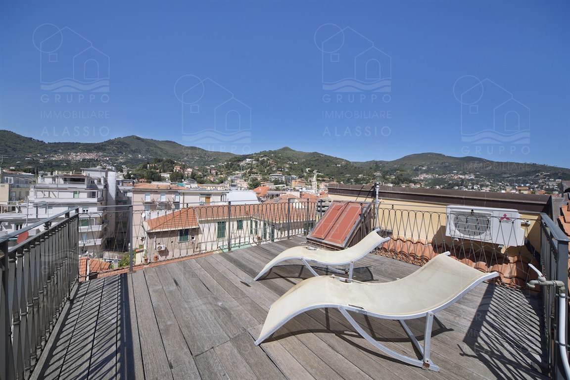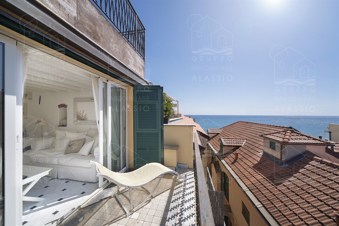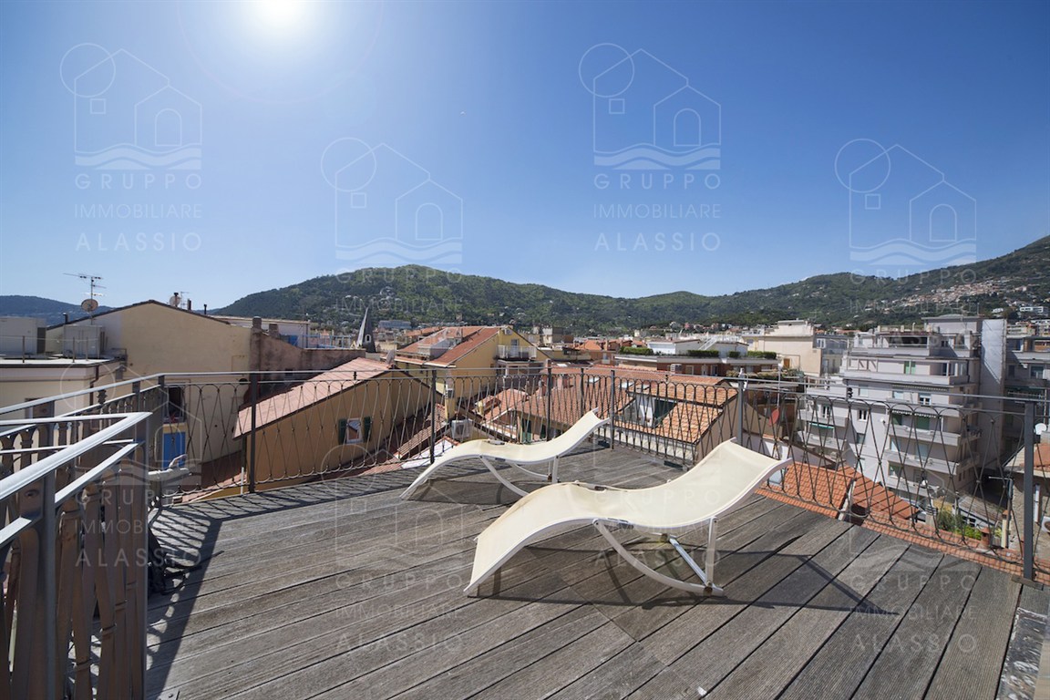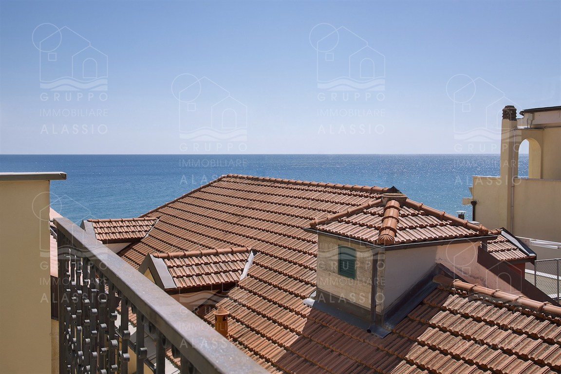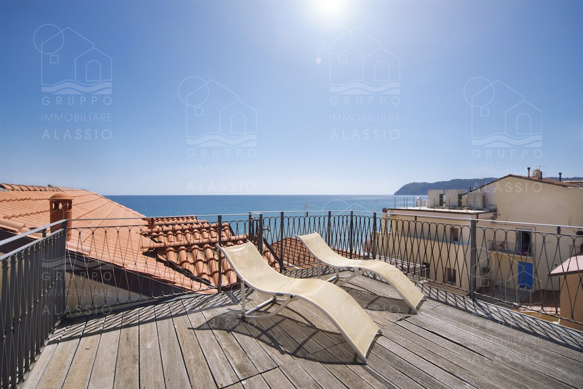 Alassio, centro storico, proponiamo luminosissimo appartamento con tre terrazzi vista mare.L'alloggio è disposto su più livelli con ingresso dal secondo piano. L'immobile è stato recentemente ristrutturato ed è in ottimo stato. L'appartamento è composto da: soggiorno, cucinotto, sala da pranzo, due camere da letto matrimoniali di cui una con soppalco, due bagni, due terrazzi e lastrico solare fronte mare. è possibile acquistare a parte un box auto.Richiesta Euro 790.000