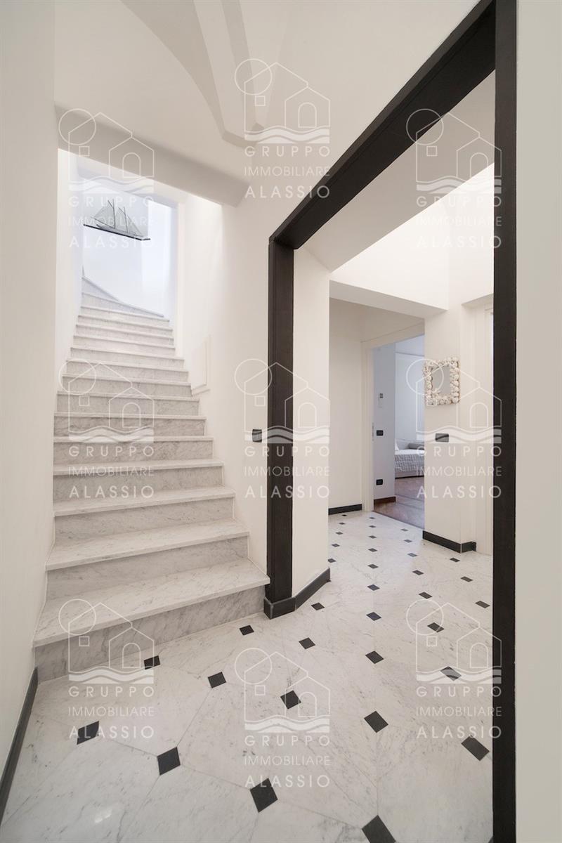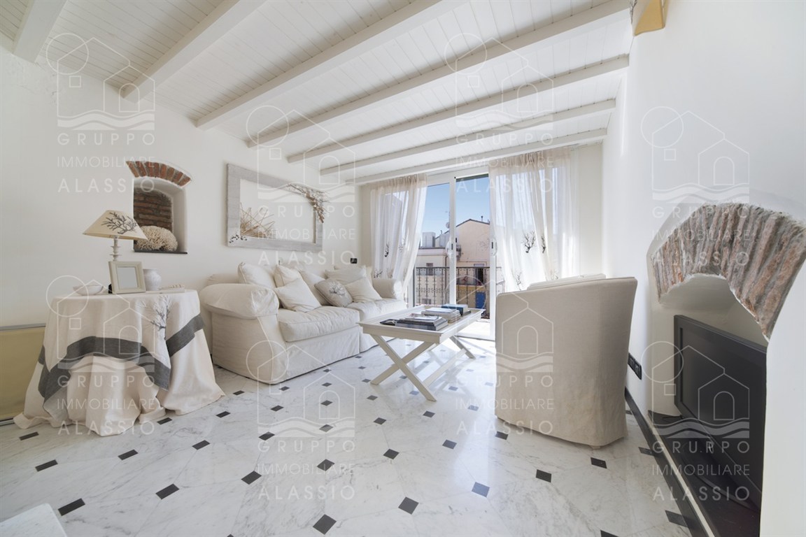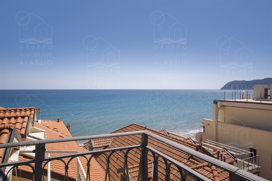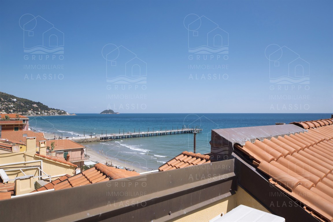 Alassio, centro storico, proponiamo luminosissimo appartamento con tre terrazzi vista mare.L'alloggio è disposto su più livelli con ingresso dal secondo piano. L'immobile è stato recentemente ristrutturato ed è in ottimo stato. L'appartamento è composto da: soggiorno, cucinotto, sala da pranzo, due camere da letto matrimoniali di cui una con soppalco, due bagni, due terrazzi e lastrico solare fronte mare. è possibile acquistare a parte un box auto.Richiesta Euro 790.000