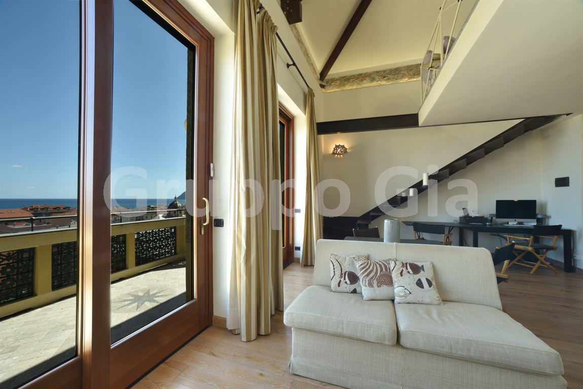 In zona di levante, comoda al mare ed ai servizi, all' interno di una villa storica, meraviglioso attico ristrutturato sito al secondo piano e disposto su due livelli. Internamente l'alloggio è composto da ingresso su soggiorno, dal quale si accede alla terrazza con vista mare, cucina abitabile, ampia camera matrimoniale con accesso alla seconda terrazza, cucina dalla quale si accede alla terza terrazza ideale per pranzare all'aria aperta durante i periodi estivi e bagno finestrato. Al piano superiore, troviamo la camera suite con bagno privato. Questo attico, dall’aspetto pulito e sofisticato riesce a combinare la modernità con una sensazione di calore, di accoglienza che una vera dimora deve avere, i materiale e le finiture scelte sono di pregio. Termoautonomo e dotato di aria condizionata. Completa la proprietà il posto auto.