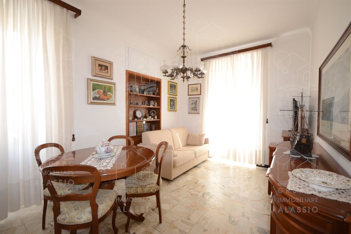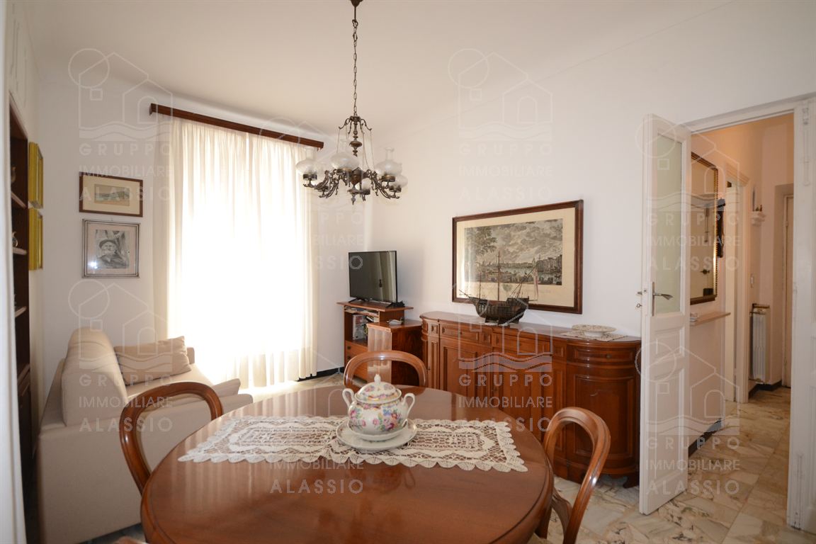 Nel cuore di Alassio, in palazzina d'epoca, al di sotto di Corso Dante abbiamo il piacere di proporre questo piacevole e luminoso appartamento con triplo affaccio e tre balconi.