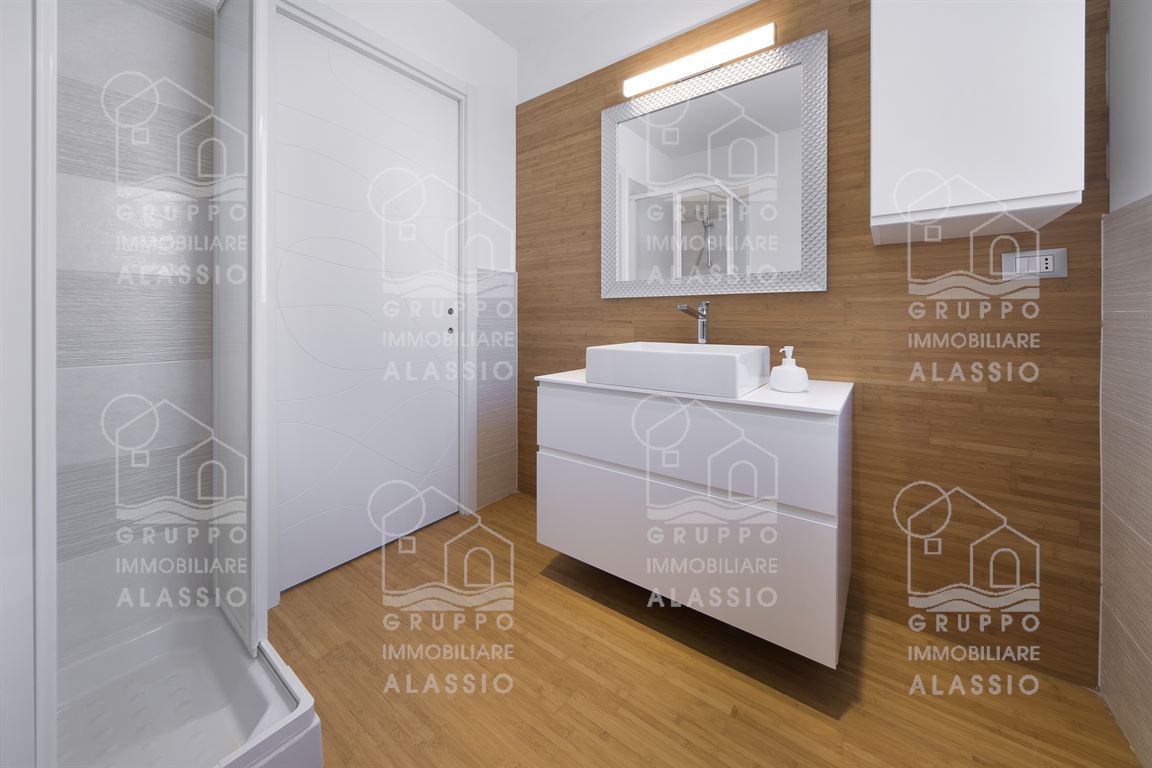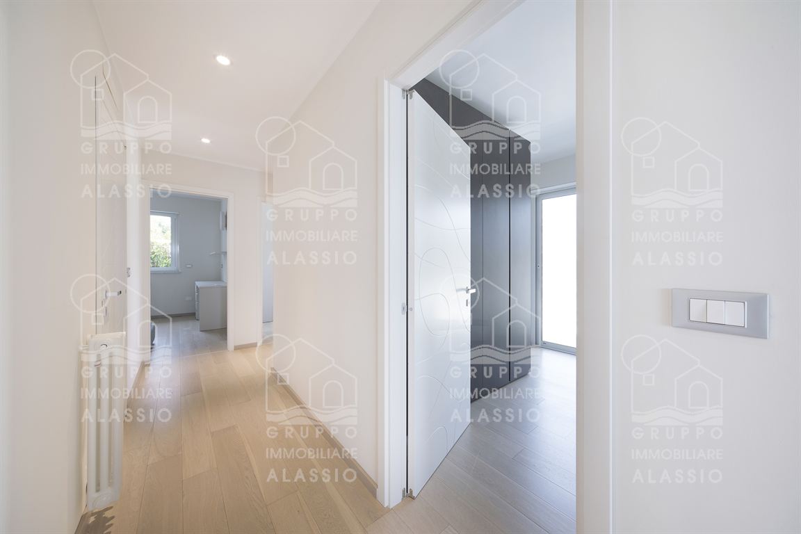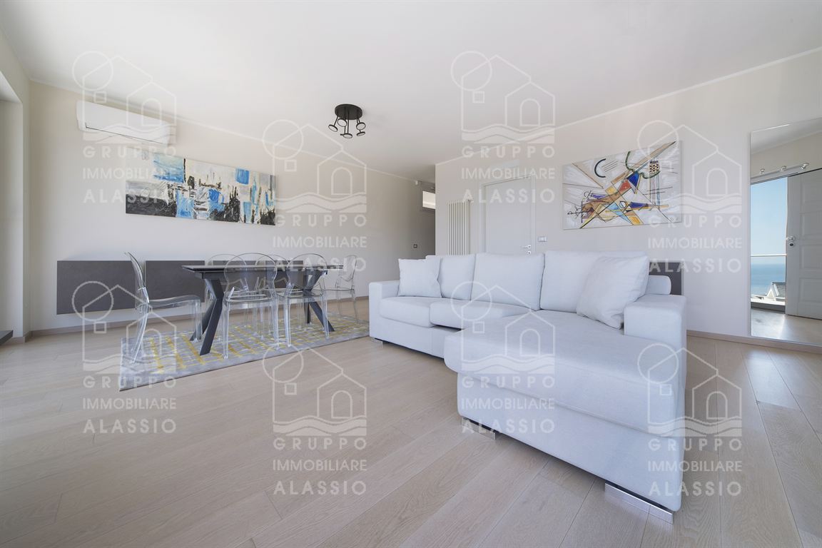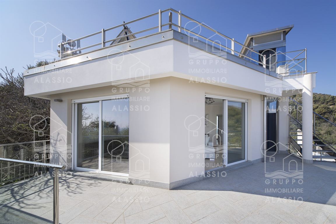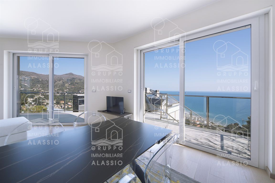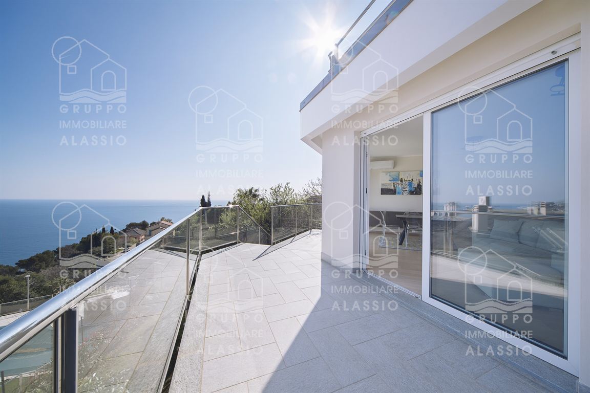 Nella suggestiva collina di Alassina, proponiamo un alloggio indipendente di nuova costruzione, appena arredato con cura e stile, pronto per essere abitato.La proprietà si compone di:- 3 camere letto accoglienti e luminose, arredate con mobili di design- Un ampio soggiorno con angolo cottura che affaccia su una spaziosa terrazza, perfetta per godersi il tramonto sul mare e ammirare la vista emozionante sul golfo- 3 servizi moderni e ben attrezzati- Un giardino privato, ideale per rilassarsi all'aperto- Un terrazzo panoramico che offre una vista mozzafiato sulla costa- Un solarium/parcheggio di ampia dimensione, perfetto per parcheggiare la propria auto o per godersi il soleLa struttura è realizzata con criteri antisismici e dotata di:- Isolamenti termo acustici per un ambiente sempre confortevole e silenzioso- Serramenti a taglio termico per ridurre i consumi energetici- Videocitofono per una maggiore sicurezza- Sistema antintrusione per proteggere la proprietà- Finiture interne di alto livello, con materiali di pregio e cura del dettaglioUn'opportunità unica per vivere in un luogo incantevole con una vista mozzafiato, in una proprietà appena arredata e pronta per essere abitata. Non perdere l'occasione di visitare questa meravigliosa proprietà!
