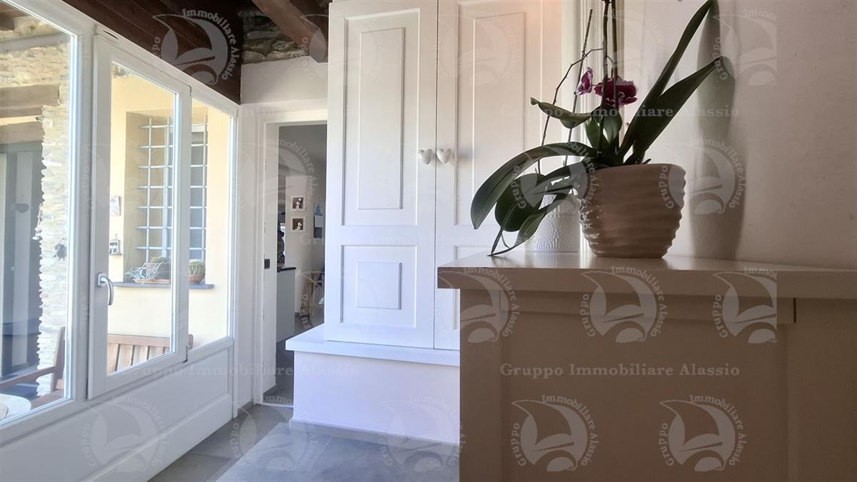 Garlenda, proponiamo appartamento indipendente situato a pochi passi dalla Club House del Golf. L'appartamento che vi proponiamo fa parte di un'antico rustico in Borgata Praglione, oggetto di un'attenta e totale ristrutturazione. Questo raffinato immobile si compone di: ingresso su una grande zona giorno, suddivisa in soggiorno, con vista panoramica verso la collina di sud-ovest e scorcio di vista mare, zona pranzo con accesso al primo terrazzo abitabile e cucina a vista, inoltre qui troviamo la camera da letto padronale con doppia finestra e cabina armadio, un bagno finestrato e la seconda camera da letto con bagno privato. La comoda scala in muratura ci porta al piano superiore dove troviamo la terza camera da letto con bagno finestrato ed il secondo terrazzo, ottimamente esposto al sole.La casa viene venduta arredata di angolo cottura e arredo fisso su misura.Completano la proprietà due comodi posti auto a pochi metri dall'abitazione.L'immobile è dotato di riscaldamento autonomo a gas metano, aria condizionata e non ha nessuna spesa condominiale.