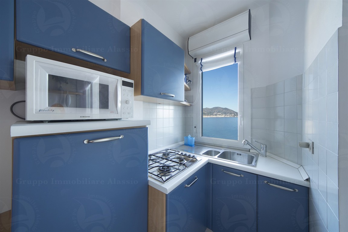 Benvenuti nel vostro rifugio di eleganza costiera! Questo raffinato bilocale, situato in un complesso residenziale esclusivo, è un'opportunità unica per vivere la bellezza mozzafiato del Golfo da ogni angolo della vostra casa.Caratteristiche Principali:Vista Panoramica: Godetevi il lusso di una vista sul Golfo da ogni stanza - cucina, soggiorno, camera da letto e persino dal bagno. Il mare diventa parte integrante della vostra quotidianità.Doppio Balcone Fronte Mare: Ammirate l'orizzonte e respirate l'aria salmastra dai due balconi che affacciano direttamente sul mare. Perfetti per cene romantiche o rilassanti momenti all'aria aperta.Complesso Residenziale Prestigioso: Vivete in un ambiente signorile con sbarra privata per l'accesso, offrendo sicurezza e tranquillità. Il contesto residenziale è curato nei minimi dettagli.Servizi Condominiali Esclusivi: lastrico solare con vista a 360 gradi, piscina con spazio per sdraio e un giardino terrazzato condominiale con barbecue. Un'oasi di relax a pochi passi da casa.Prossimità alle Spiagge e alla Passeggiata di Laigueglia: Sperimentate la dolce vita a due passi dalle sabbiose spiagge e dalla pittoresca passeggiata di Laigueglia. Una posizione che unisce la comodità del mare con il fascino del centro storico.Box Auto Privato sito nello stesso stabile € 80.000 trattabili : box auto sito nello stesso stabile, Un'autentica rarità! Il vostro box auto privato sotto casa offre comodità e sicurezza, un dettaglio che rende questo alloggio ancora più unico.