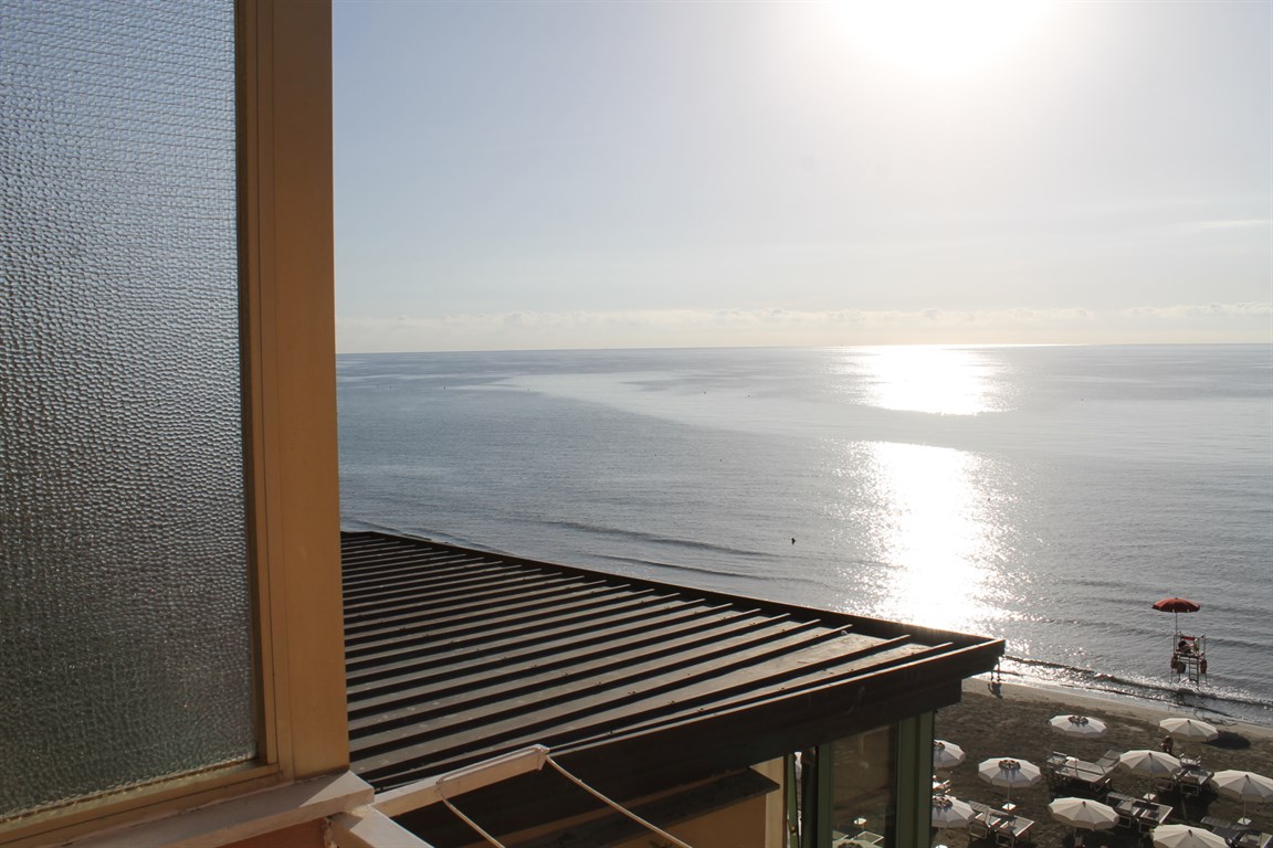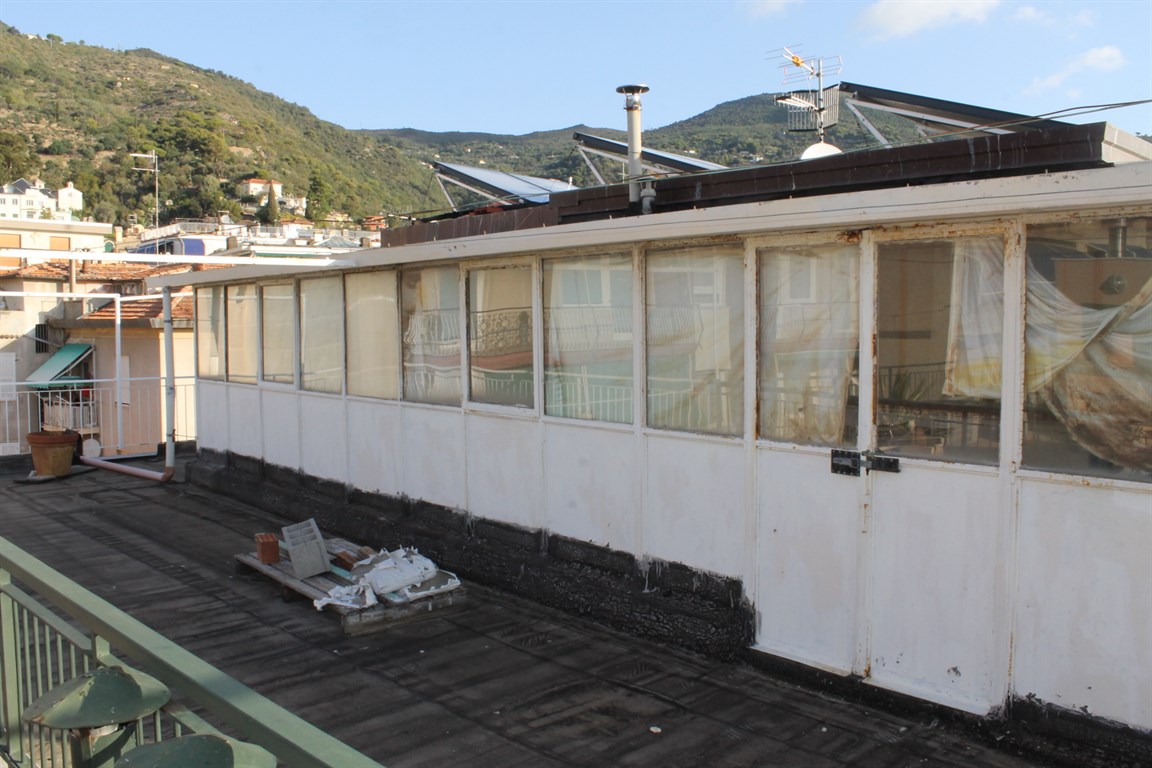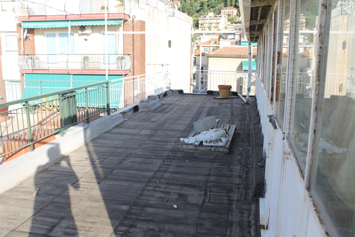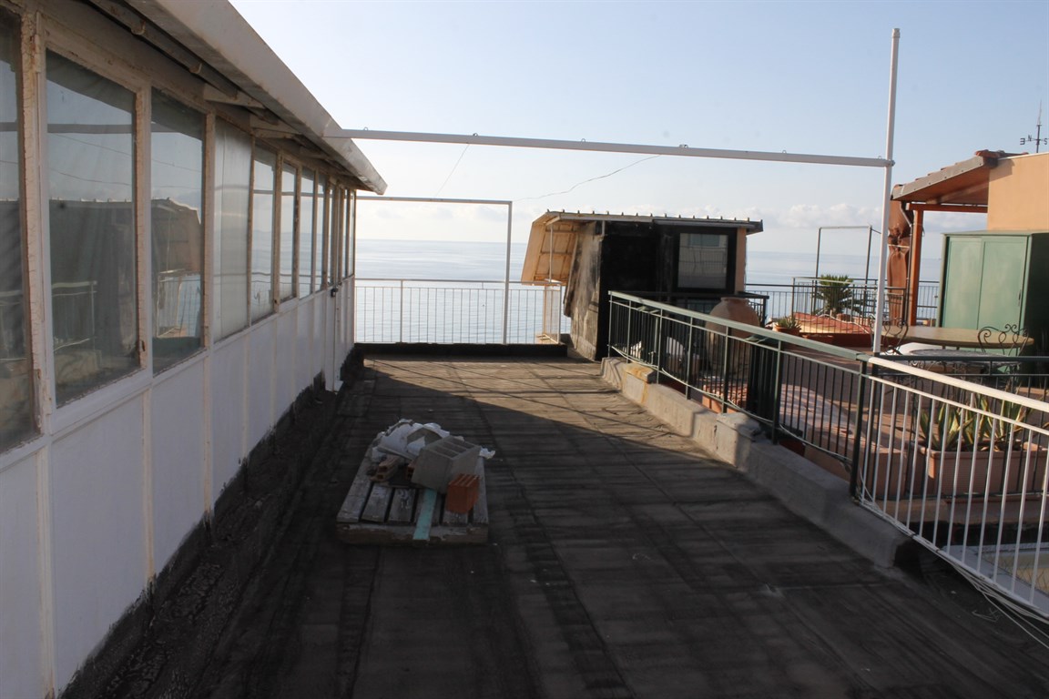 vicinissimo a Piazza Partigiani, alloggio sul mare, ultimo piano con lastrico solare, vista mare, terzo e quarto piano senza ascensore, circa mq. 90 + bilocale sopra da unire con scala interna in fase di ristrutturazione composto da ingresso, cucina con scorcio sul mare, una cameretta, soggiorno, camera matrimoniale e camera con 2 letti, bagno, balcone, termo autonomo.