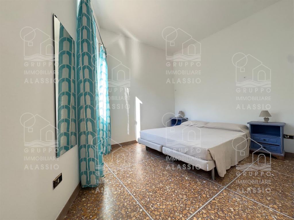 Laigueglia, a circa 200 metri dal molo, proponiamo appartamento al piano attico con terrazzo di 60 mq. circa oltre a lastrico solare di proprietà. L'alloggio è composto da: ingresso, cucina abitabile, soggiorno, due camere da letto matrimoniali, un bagno con finestra e veranda. Tutte le stanze hanno accesso al terrazzo che si sviluppa su tre lati. L'appartamento è stato parzialmente rinnovato. VISTA MARE.
