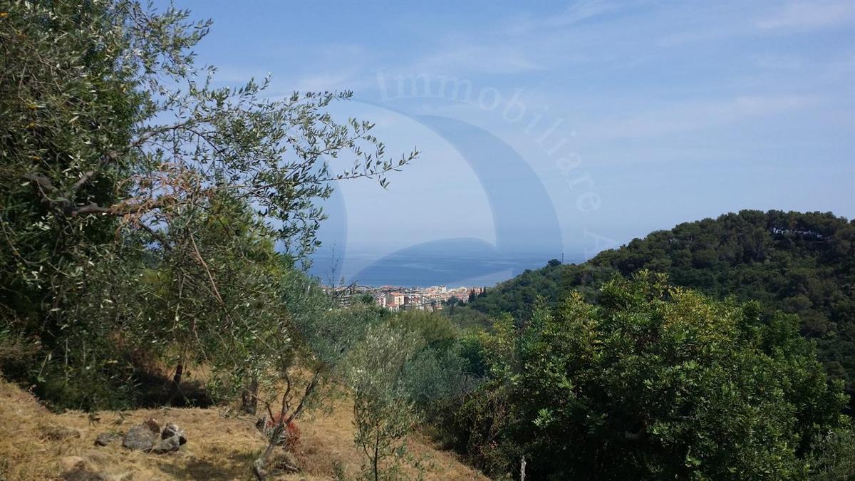 Alassio, sulla collina di Moglio, vendesi terreno, totalmente vista mare, di 3.200 mq. con un progetto in attesa di essere portato a termine, con eventuali variazioni dell'acquirente del terreno, per poi farlo approvare definitivamente, per costruire una villetta su tre livelli, uno interrato + 2 fuori terra. Nel piano interrato è previsto un box di 33 mq., una taverna/locale di sgombero di 47 mq., una cantina di 15 mq., salendo internamente al piano terra, si prevede un soggiorno con angolo cottura, una camera e un bagno, proseguendo al piano superiore, sotto tetto, due locali di sgombero di 12 mq. ognuno, disimpegno, un bagno e un terrazzino.