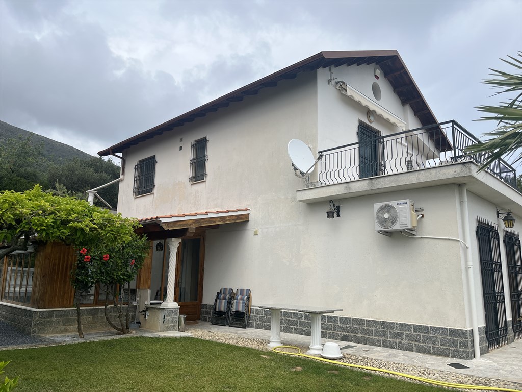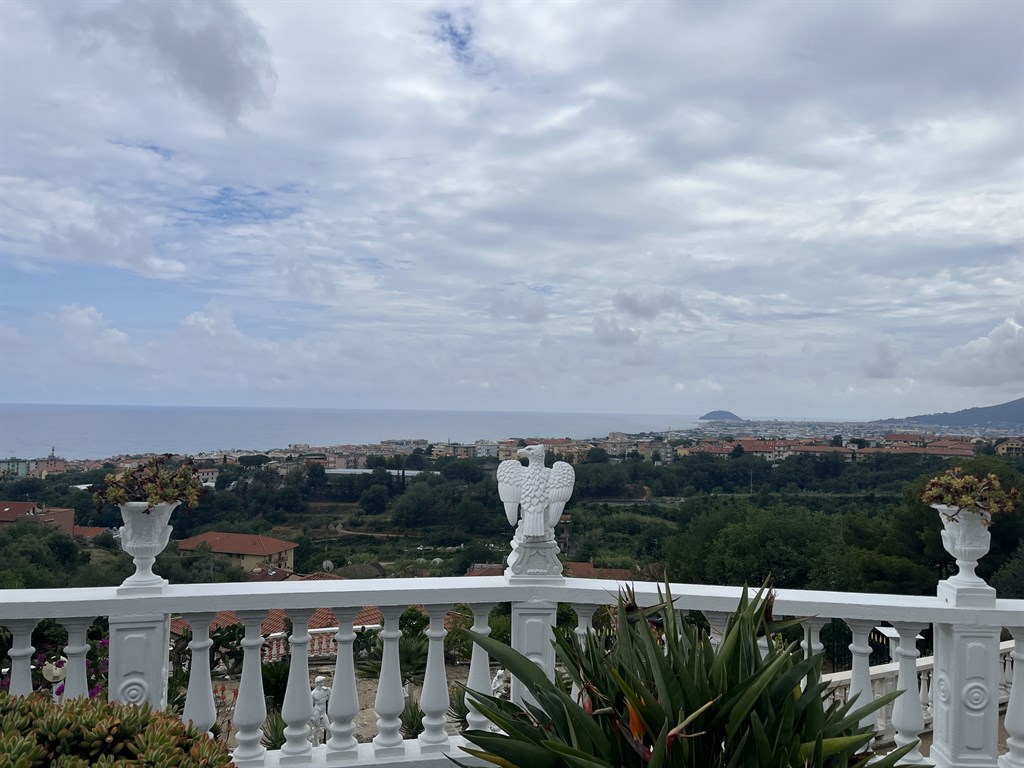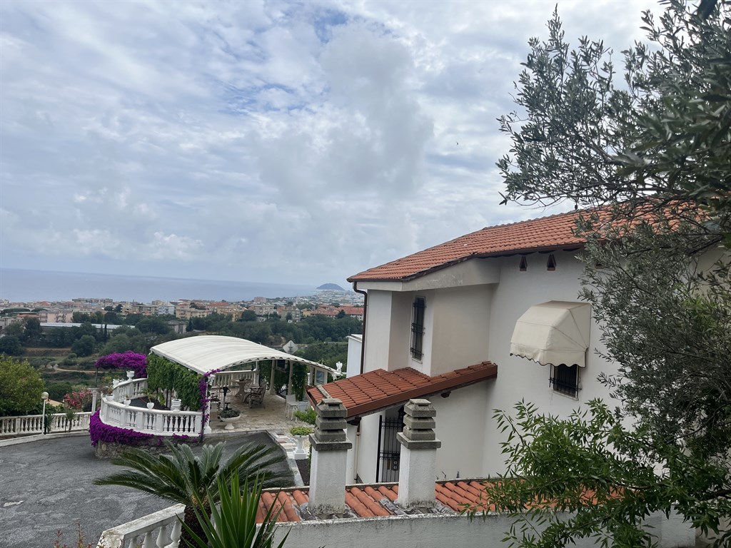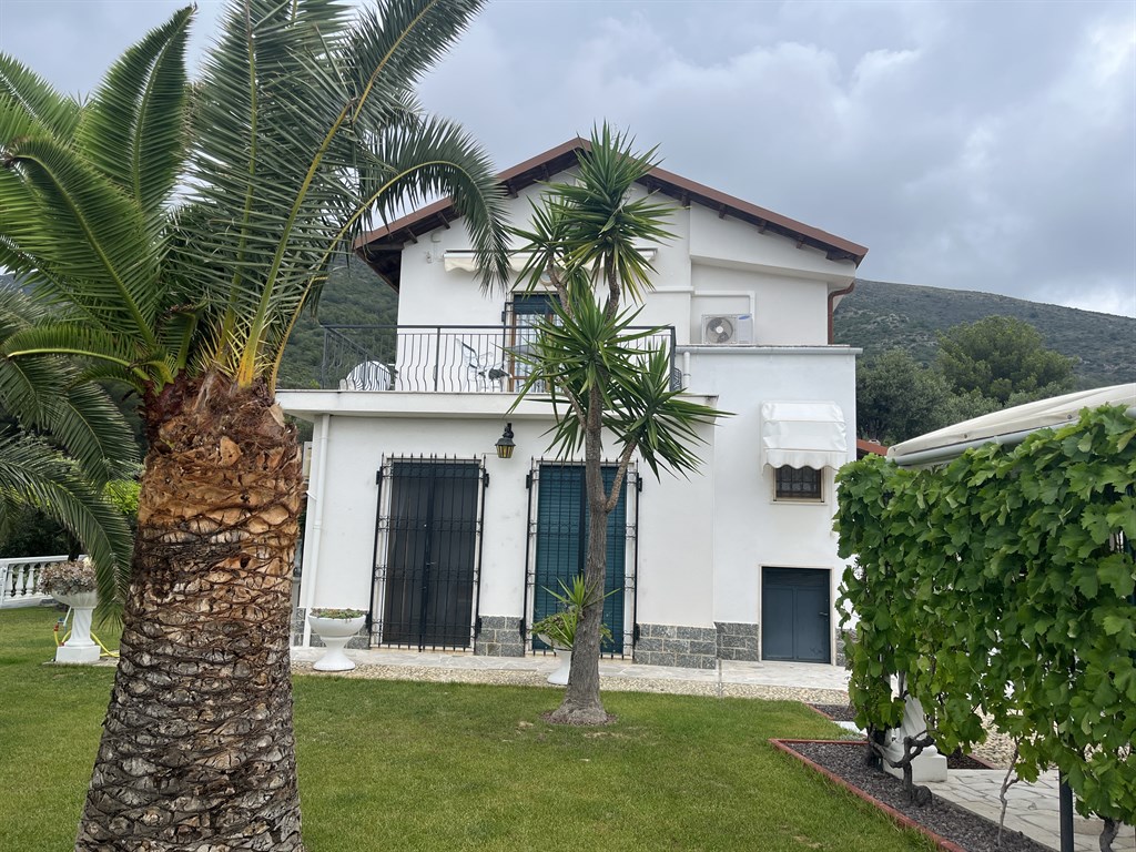 Ceriale in posizione dominante, mt 100 sul livello del mare e a circa mt. 600 in linea d'aria proponiamo ampia villa bifamiliare circondata da un grande parco piantumato di mq. 2600 circa dal quale si gode di una bella vista mare.La villa si sviluppa su due livelli ed è composto dall'ingresso che si apre sulla spaziosa zona giorno, la cucina abitabile, una camera, un primo bagno ed una veranda al piano terreno, mentre al primo piano troviamo le due camere da letto matrimoniali, una cameretta, il secondo servizio ed una terrazza.Completano la proprietà una cantina di 40 mq, il grande box auto di circa 80 mq ed un posto auto coperto