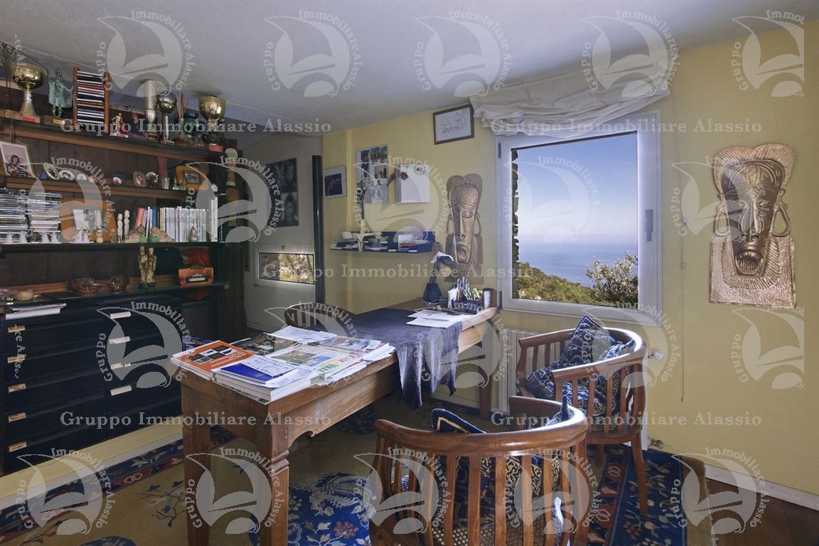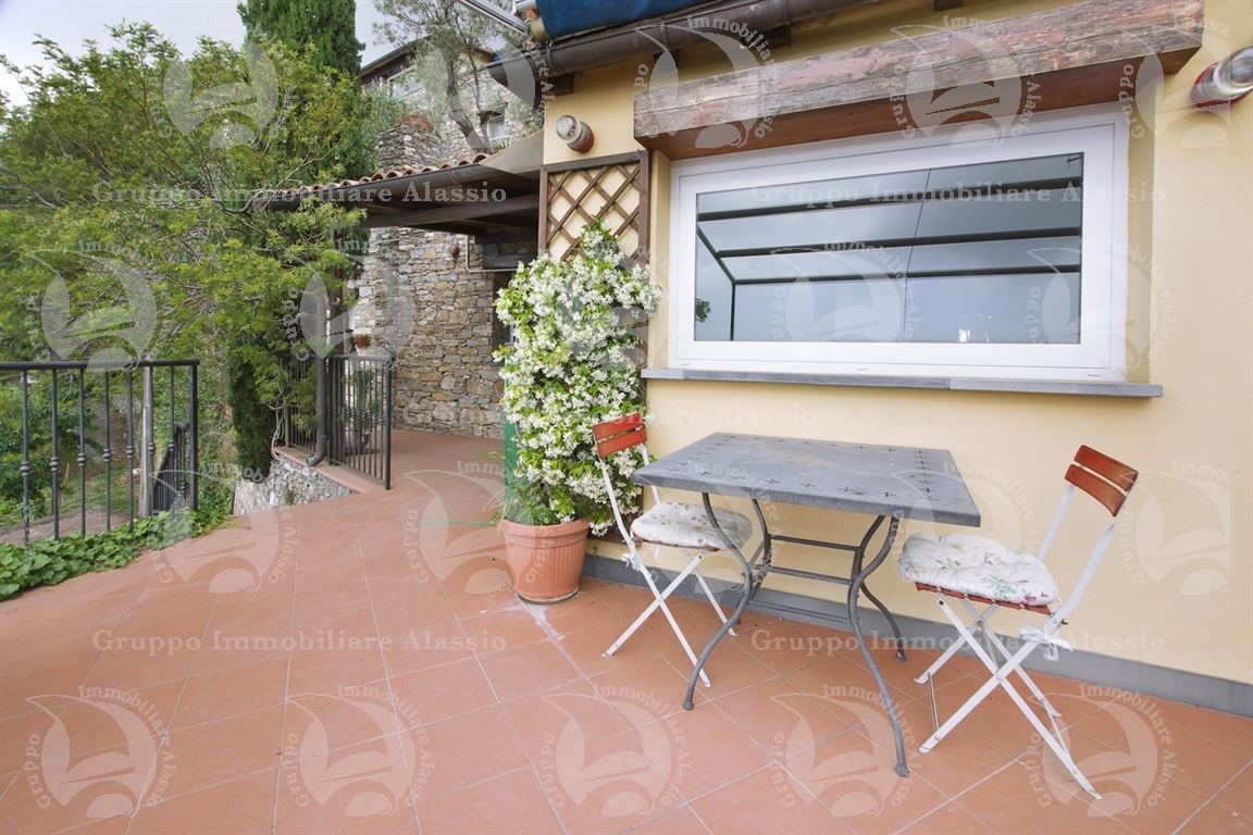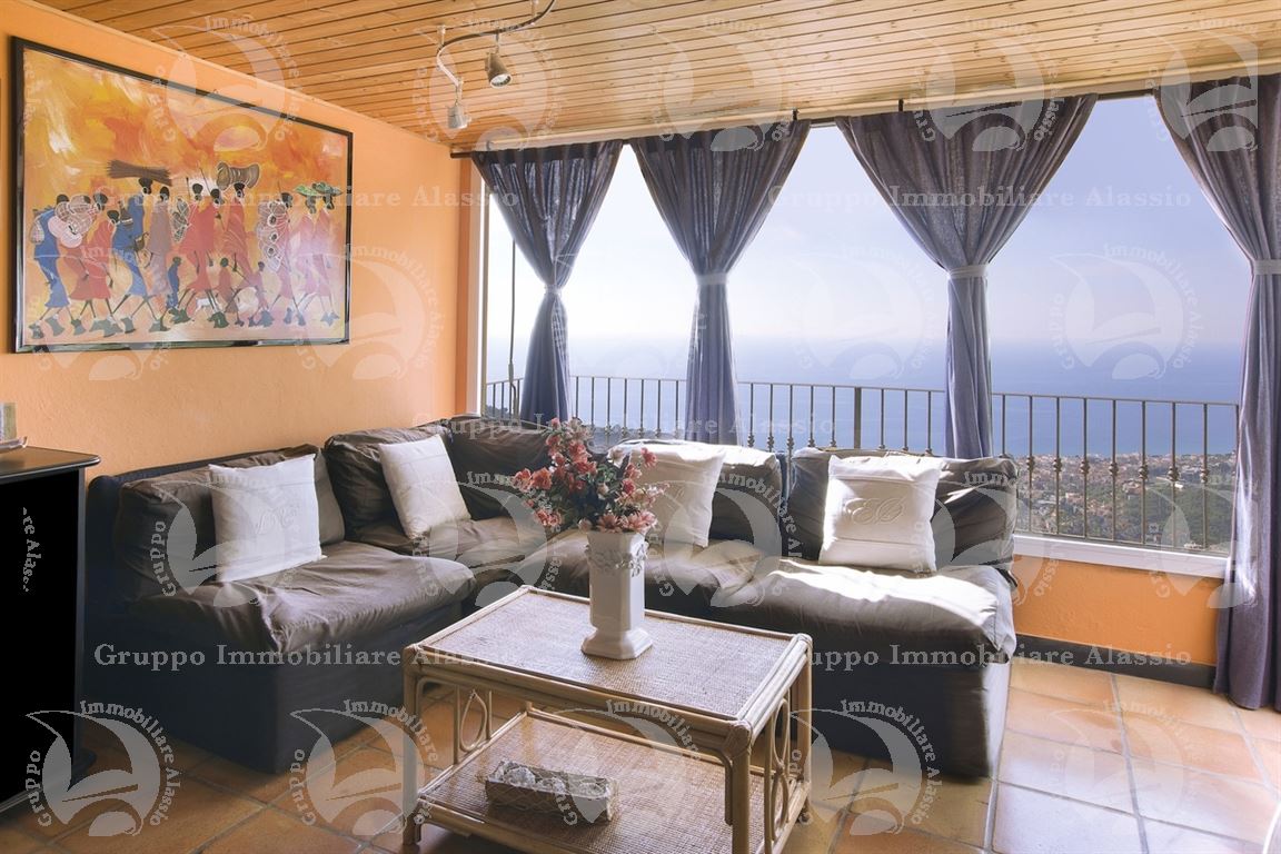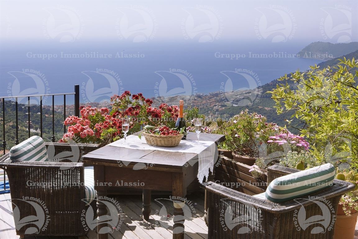 Alassio, sulla collina, zona di Vegliasco, viene proposta una villa su più livelli. Nasce come antico rustico in pietra, totalmente recuperato, negli anni 1981/82, mantenendo l'architettura e i materiali dell'epoca e principalmente la pietra a vista lavorata tutta a "faccia a vista", totalmente scagliata e dove non si doveva lasciar vedere il cemento usato per rinforzarla. Siamo a quota 402 s.l.m. dalla quale si ammira una stupenda vista del golfo di Alassio e baciata dal sole, che nasce dal mare, sin dai primi minuti della giornata. Da ogni angolo della villa, si ammira la meraviglia della collina sino al mare.Le soglie sono in ardesia a spacco, i pavimenti In cotto d’epoca in zona giorno e in legno massello in zona notte. Bagni e cucine in cera sarda con doppio lavello e dotati sia vasca che di doccia. Tre camini a legna, per serate romantiche davanti al focolare, barbecue e forno per pizze, nelle varie zone della villa, per serate spensierate con amici. Il corpo principale della villa è di 220 m² + 65 m² di porticato + 60 m² di terrazzi. Un piccolo bilocale di 65 m² con 30 m² di terrazzo. Una taverna di 50 m² + 30 m² di terrazzo + 10 m² di terrazzo.Terreno piantumato, con molteplici alberi da frutto e olivi, di 600 m². Un'ampia cantina e per finire un box auto doppio di 55 m².