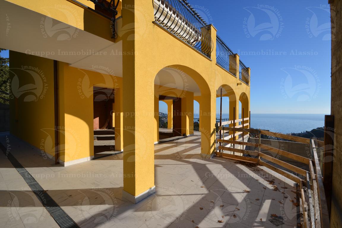 Alassio, nuova villa con magnifica vista mare e dell'isola Gallinara. A meno di 5 minuti dal centro, la villa è stata pensata e progettata per fornire ai suoi fortunati possessori ed ospiti tutte le piacevolezze della magnifica posizione e tutti i confort e gli accessori per godersi al meglio il suo splendido affaccio verso mare: il grande e fresco porticato, lo spazioso terrazzo angolare al primo piano, la zona giardino con la cucina d'estate, il luminoso salone con vetrate vista mare e vista giardino, un'area per l'eventuale piscina ed il solarium, le camere principali con vista mare, tutti i bagni finestrati.E, ancora, un'ampia autorimessa, un grande seminterrato con due aperture verso l'area piscina, lo spazio per le auto degli ospiti.Divisioni interne e materiali personalizzabili. Possibilità di creare due appartamenti. Da terminare.